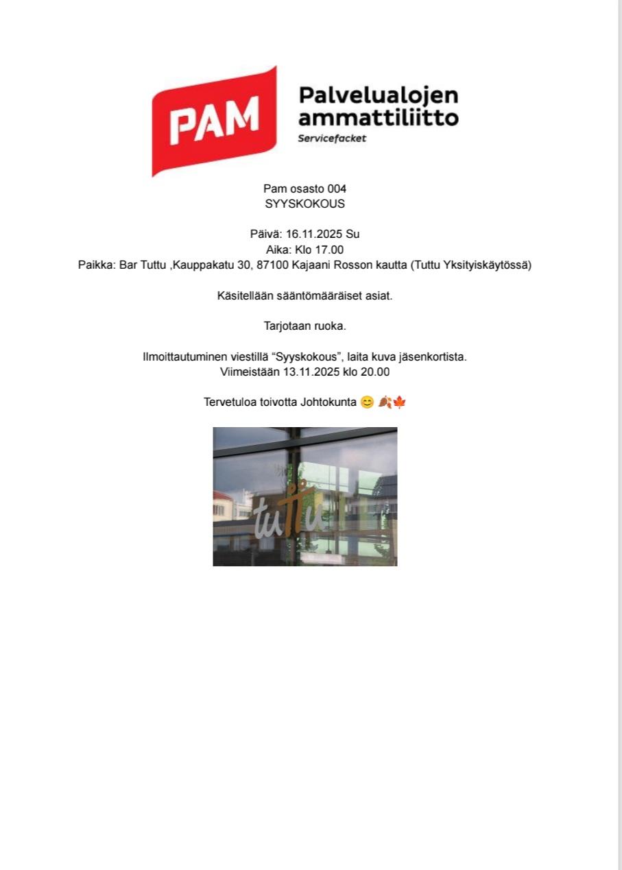 Pam Ammattiosasto 004 järjestää jäsenille